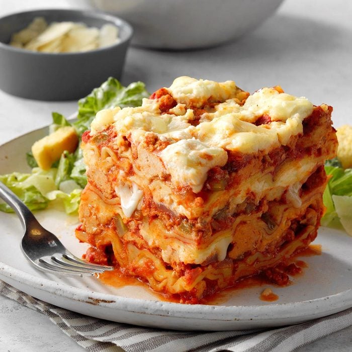 Destined to be a new favorite with all around the table, this zesty take on traditional Italian lasagna is a nod to the Gulf Coast. Increase the amount of Cajun seasoning if you like spicier fare. —Mary Lou Cook, Welches, Oregon