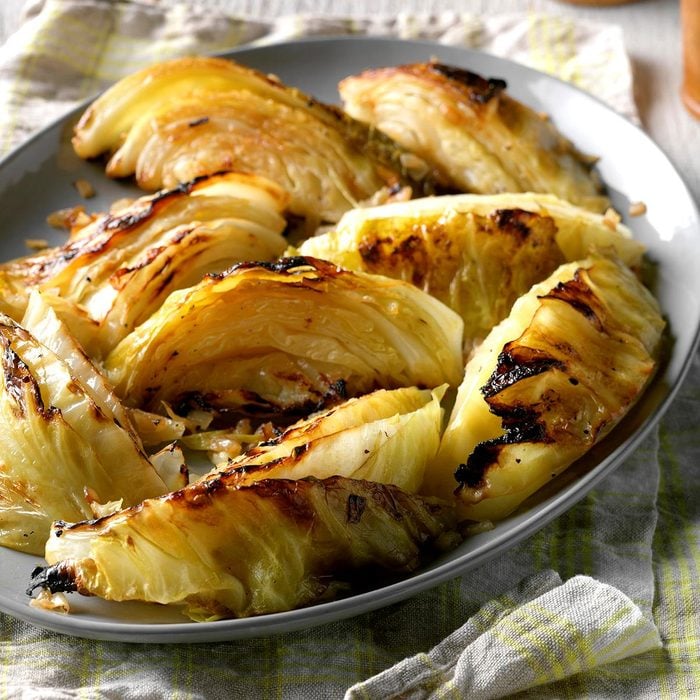 While lots of other roasted vegetables crisp up after roasting, this roasted cabbage dish turns out tender and saucy. This is a great recipe to use when you need to use up lots of leftover cabbage—just pair it with pork or corned beef!