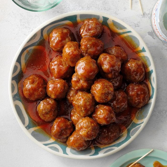 You'll usually find a batch of these meatballs in my freezer. The slightly sweet sauce nicely complements the spicy pork sausage. —Genie Brown, Roanoke, Virginia