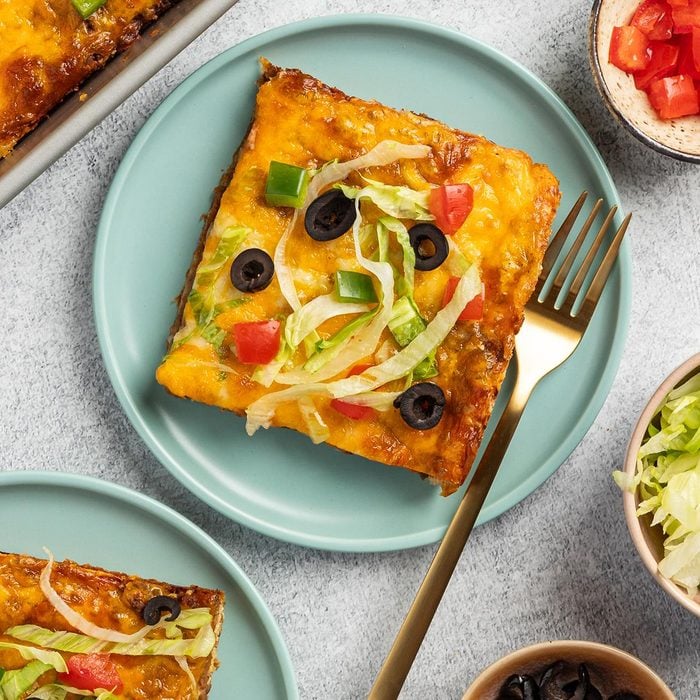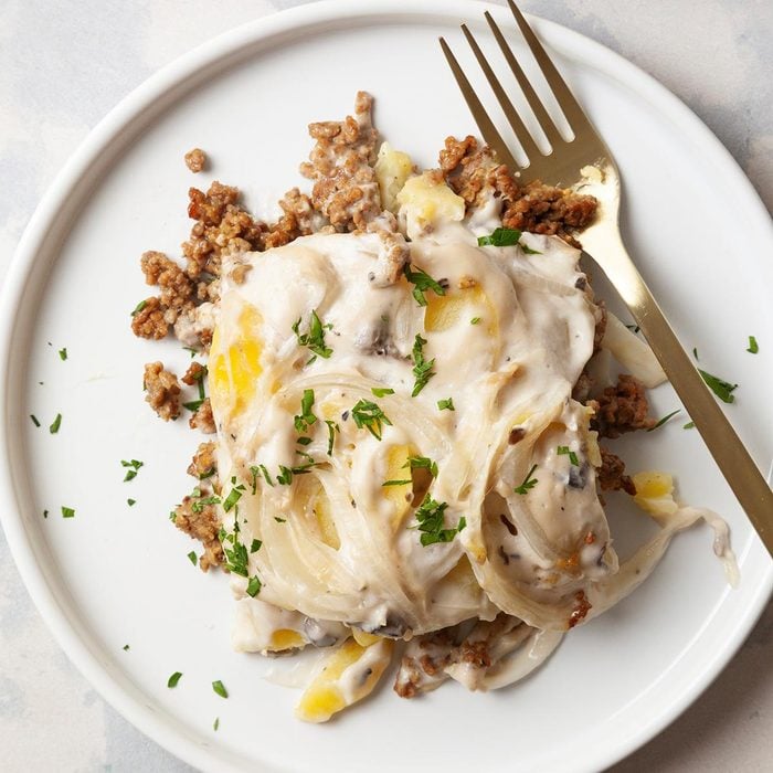 Ground beef casseroles are excellent make-ahead meals. Prep your casserole a day or two before you want to serve it, cover it tightly and refrigerate it. When you’re ready to eat, let the casserole stand at room temperature while the oven heats, then bake as directed. For the best texture, wait to add any crunchy or fresh veggie toppings until baking. For even longer storage, learn how to freeze casseroles so that you can have them on hand for up to three months.