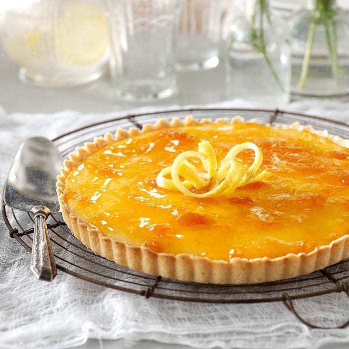 If you like the tang of citrus, you’ll love this lemon tart. The apricot preserves on top add a nice bit of sweetness. —Peggy Lunde, Costa Mesa, California