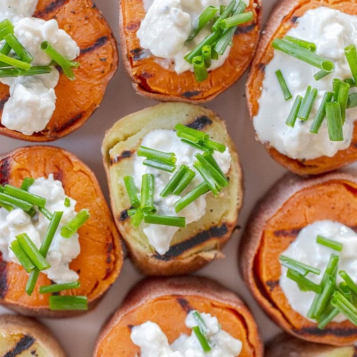 My husband first tried this recipe with plain potatoes. They were so yummy; we experimented with sweet potatoes. Dipped in Gorgonzola spread, they’re irresistible. —Kristen Minello, Macomb, Michigan