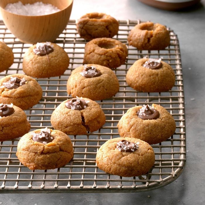 This crowd-pleasing recipe is a holiday staple, but it’s too tasty not to make all year. The rich, moist dough adapts well to gluten-free ingredients, and they’ll keep in the tin for several days. It’s a great recipe to make with kids: have them unwrap and press the Kisses.