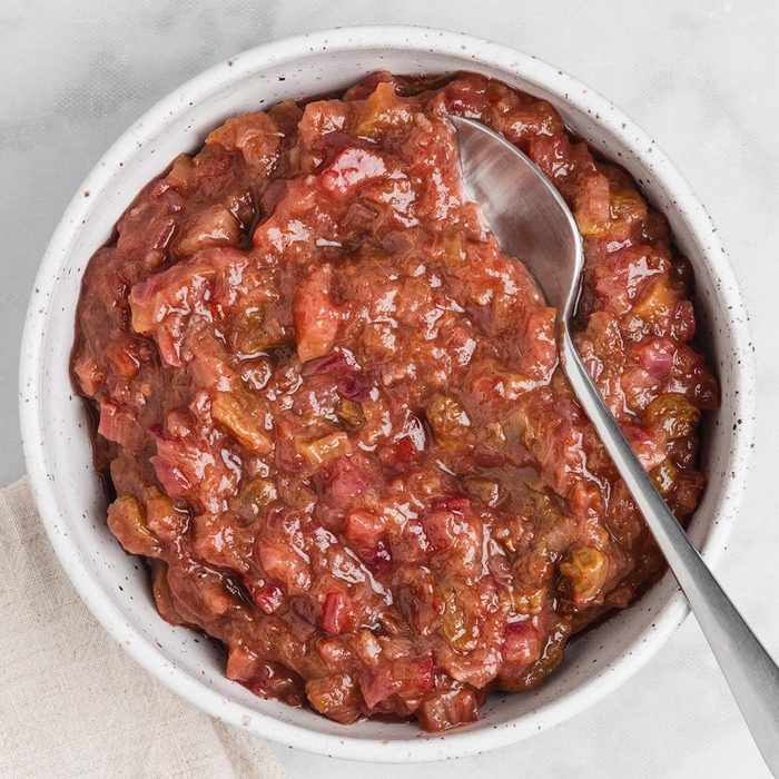 It's always fun to serve a meat or poultry dish with a twist. This tangy-sweet chutney is a wonderfully different garnish. With fine chunks of rhubarb and raisins, it has a nice consistency. It's among our favorite condiments. —Jan Paterson, Anchorage, Alaska