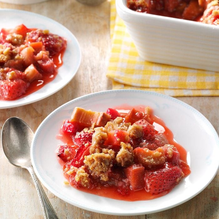 I found this strawberry rhubarb crisp recipe on a box of Quaker Oats about 20 years ago. It's quick and easier to make than pie. It's versatile, too, because you can add strawberries in spring or apples in fall. I usually pop it into the oven shortly before we sit down to eat so it's still warm for dessert! —C.E. Adams, Charlestown, New Hampshire