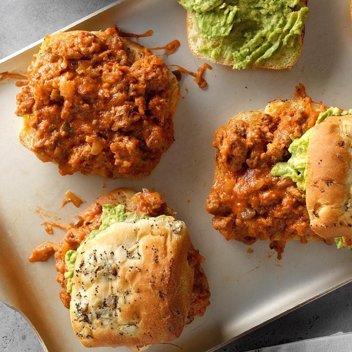 The combination of chili sauce and ground turkey in these sloppy joes creates a delicious flavor. The avocado adds a special touch to the sandwiches. —Nichole Jones, Idaho Falls, Idaho