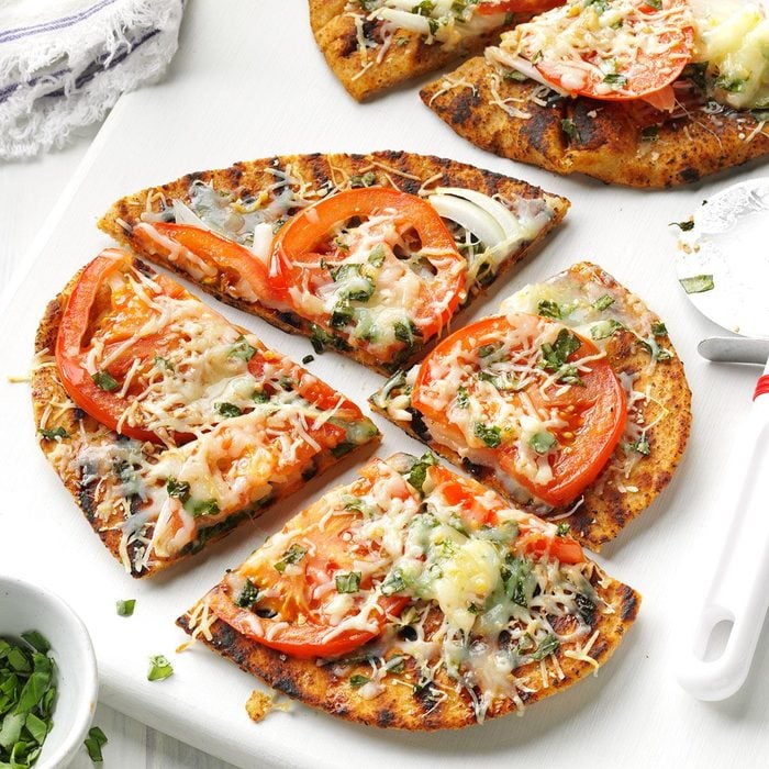 Grilled flatbread is a tasty way to put fresh garden vegetables to use. It's so versatile: Simply change the vegetables and cheese to suit your family's taste. It also works well cooked indoors, on a grill pan with a lid. —Carly Curtin, Ellicott City, Maryland