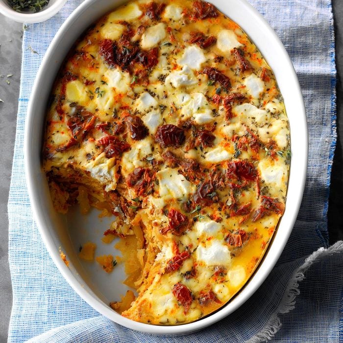 For a healthy breakfast casserole that fits any meal, you can’t beat the frittata. We add red and green peppers and use the stovetop instead of the oven. —Loretta Kelcinski, Kunkletown, Pennsylvania