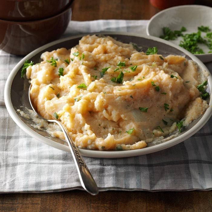 If you’re tired of serving the same ol’ mashed potatoes, give these peppery mashed turnips a try. As a root veggie, turnips mash up smooth and creamy. They have a peppery, sweet flavor while contributing fewer calories and carbs than potatoes.