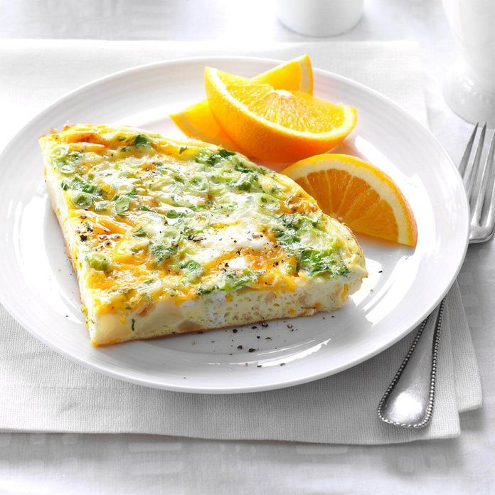 Even folks who don’t care for eggs will like this dish. The great taste of potatoes, onions and garlic come through. —Edie DeSpain, Logan, Utah
