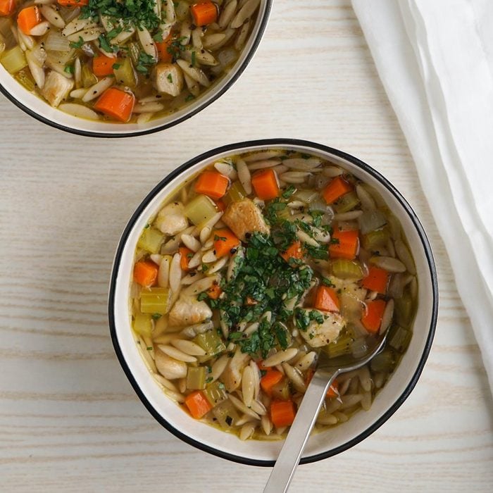 My husband is Greek, so I'm always trying new Mediterranean recipes. This lemon chicken orzo soup is his favorite dish that I make. Serve it with a little feta or Parmesan and a side of toast. —Kristine Kosturos, Olympia, Washington.