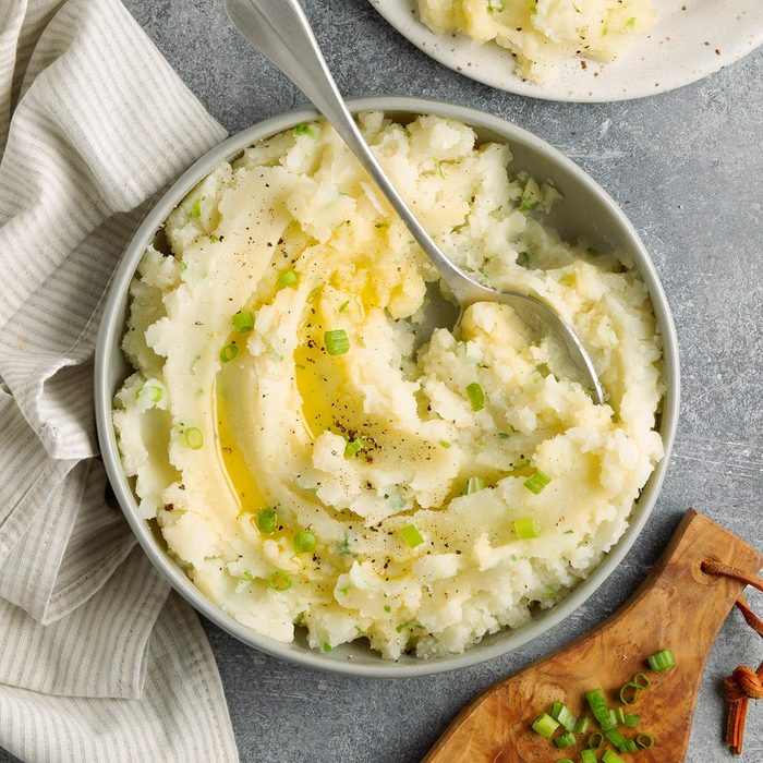 Mashed potatoes are a classic comfort food recipe, but they don’t have to be unhealthy. This recipe uses buttermilk instead of heavy cream and butter, plus a jolt of garlic for plenty of savory flavor.