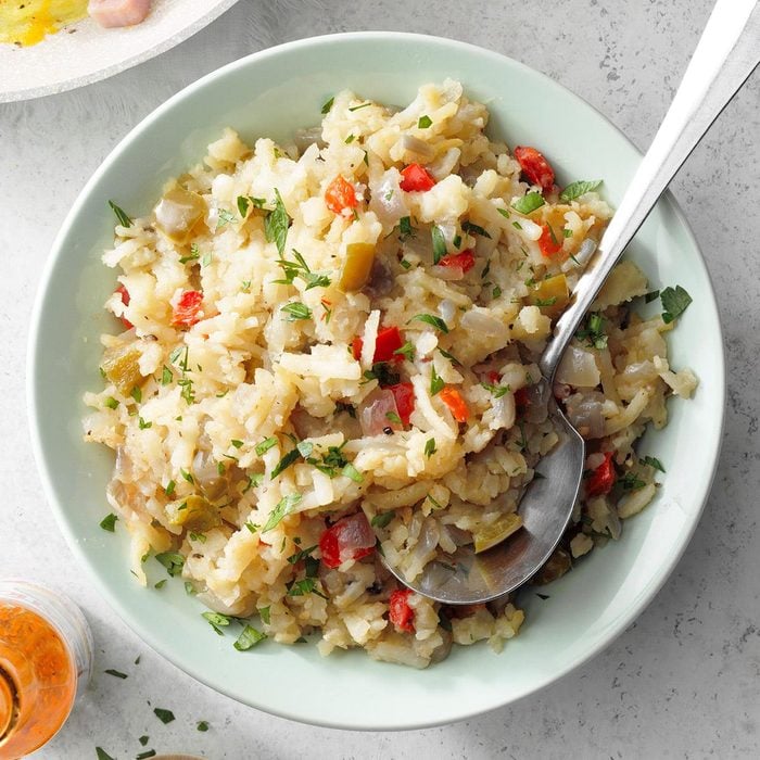 It’s crazy how just a few ingredients can make such a difference. Using finely chopped rotisserie chicken in this recipe makes it perfect for a busy weeknight meal, but you can leave the chicken out if you prefer. —Colleen Delawder, Herndon, Virginia