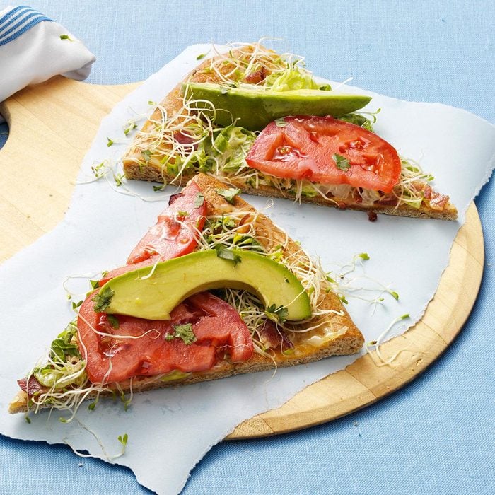 You can use your favorite store-bought pizza dough or make your own for this West Coast-inspired pie topped with tomato, avocado and sprouts. —Taste of Home Test Kitchen