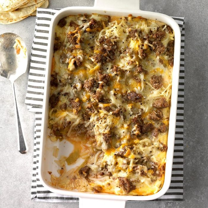 Easy and cheesy, my go-to casserole for action-packed mornings has made many appearances at holiday breakfasts, potlucks and even my daughter's college apartment to feed her hungry roommates. —Patty Bernhard, Greenville, Ohio