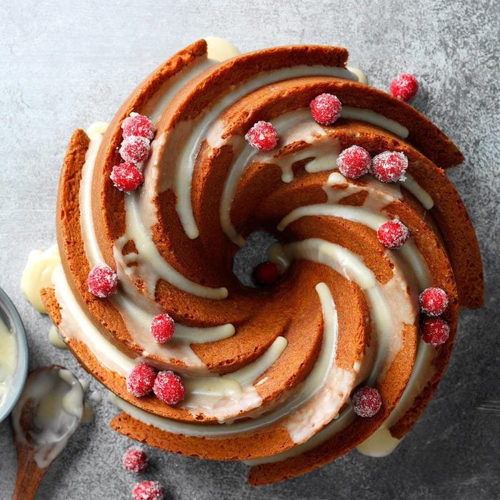 When you want an extra-special dessert for the holidays, it’s hard to beat a seasonal homemade cake. I like to drizzle mine with a simple but elegant glaze flavored with amaretto. —Jackie Howell, Tucson, Arizona