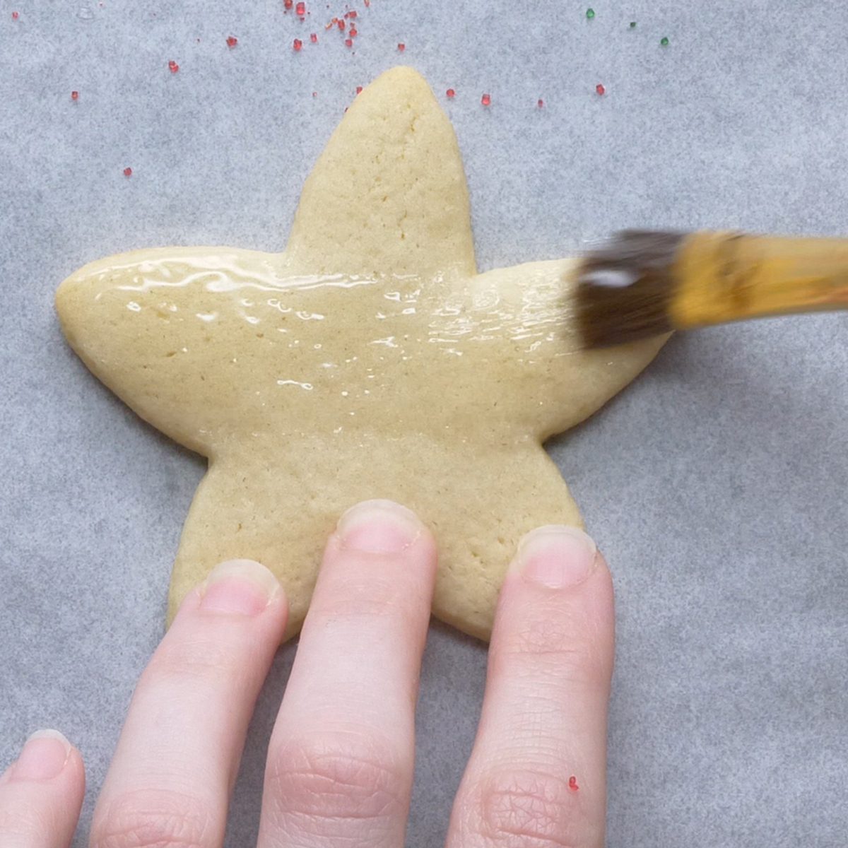 If you’re decorating cutout cookies or even spritz, you can use corn syrup to keep your sprinkles in place after baking. Just brush the cookie with a bit of warmed up syrup and sprinkle away. The sprinkles will stay in place once cooled.
