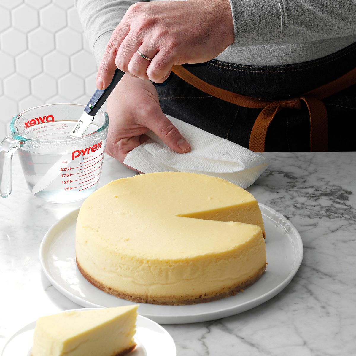 A warm knife cuts through cakes, cheesecakes and bars like butter. Before serving, dip your knife into hot water and dry it. Then slice away. Repeat as needed.