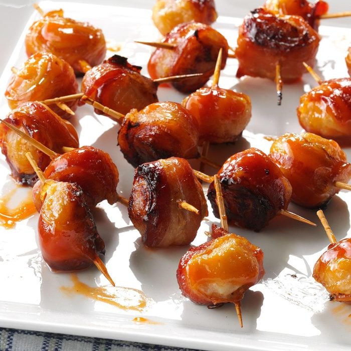These cute little bacon-wrapped smokies are finger-licking good. They have a sweet and salty taste that's fun for breakfast or as an appetizer. —Cara Flora, Kokomo, Indiana