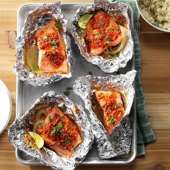My husband and I love salmon, so I'm always looking for fun ways to change it up. We both love the blend of heat and citrus, plus the foil packet makes for easy cooking and cleanup! —Roxanne Chan, Albany, California
