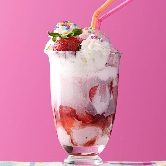 Strawberries get treated to a delicious chill in this pretty and simple drink.—Taste of Home Test Kitchen