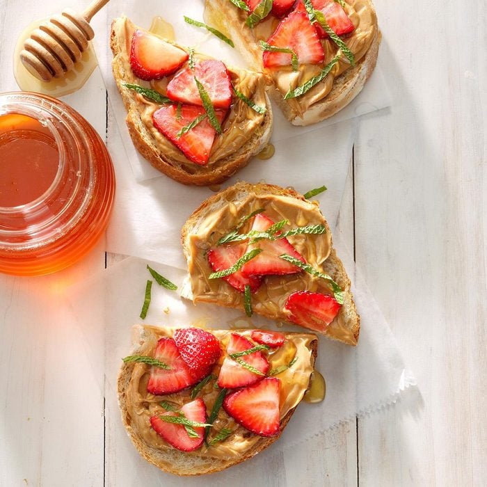 Who needs jam when you have fresh strawberries? A drizzle of honey and a bit of mint make this sandwich stand out. —James Schend, Pleasant Prairie, Wisconsin