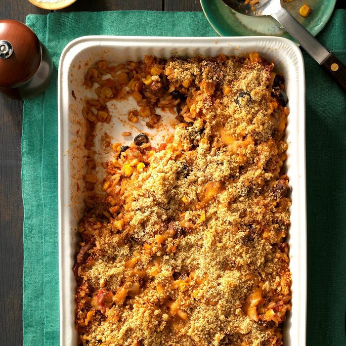 I work at a local hospital and another job part time, so I'm always on the lookout for good, quick recipes to fix for my family. Some of my co-workers and I exchange recipes. This zippy casserole is one that was brought to a picnic at my house. People raved over it. —Dianne Esposite, New Middletown, Ohio