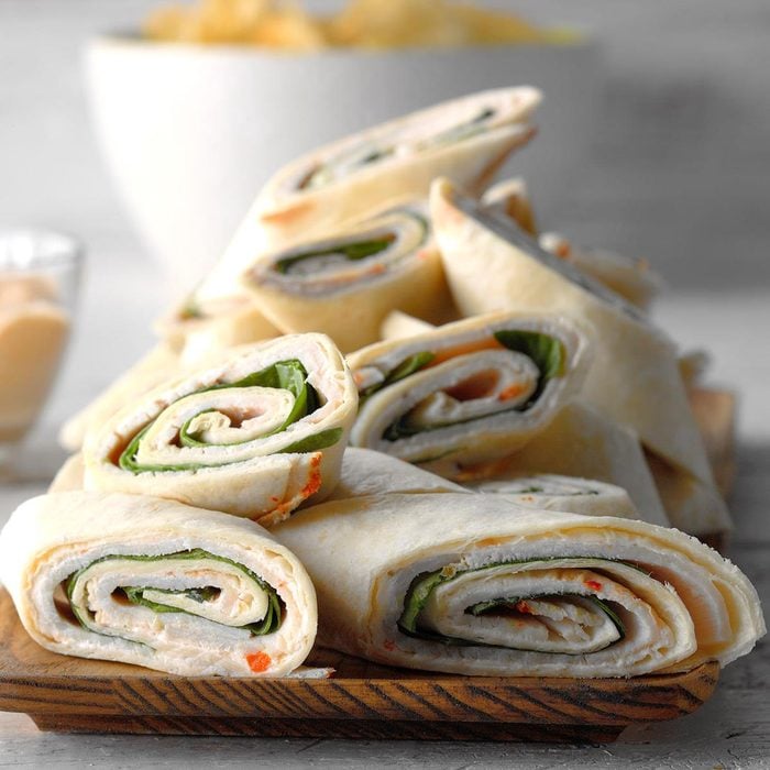 Need an awesome snack for game day? My kids love these easy four-ingredient turkey pinwheels. Go ahead and make them the day before—they won’t get soggy! —Amy Van Hemert, Ottumwa, Iowa