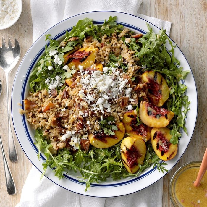 Grilled Peach, Rice & Arugula Salad