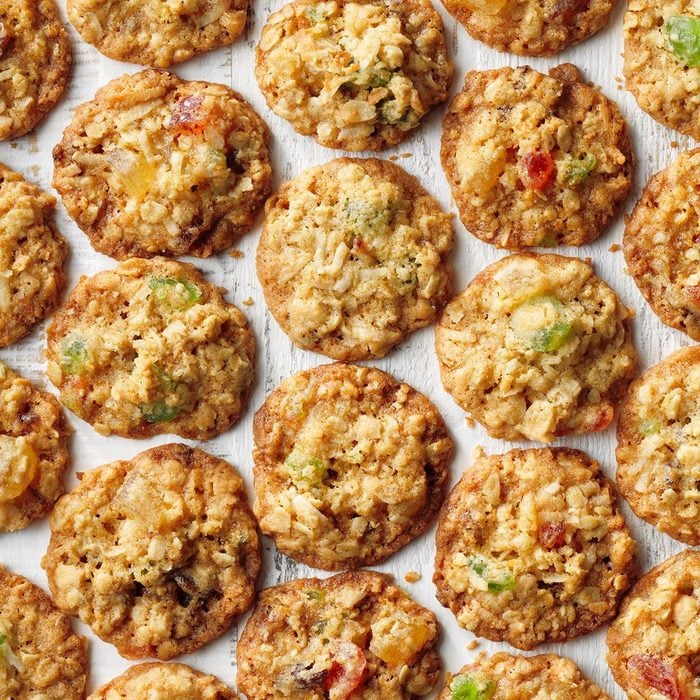 These no-fuss candied fruit cookies are both nutty and fruity, so they're always a hit at holiday time. —Florence Monson, Denver, Colorado