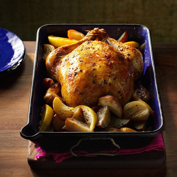 I love lemon and thyme together so I decided to roast a chicken with that combo. The seasoning is simple, and the meat comes out moist and tender. —Pam Nelson, Beaverton, Oregon