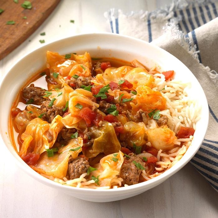 A head of cabbage seems like it never ends. Here’s a delicious way to use it up. My husband is this stew’s biggest fan. —Pamela Kennemer, Sand Springs, Oklahoma