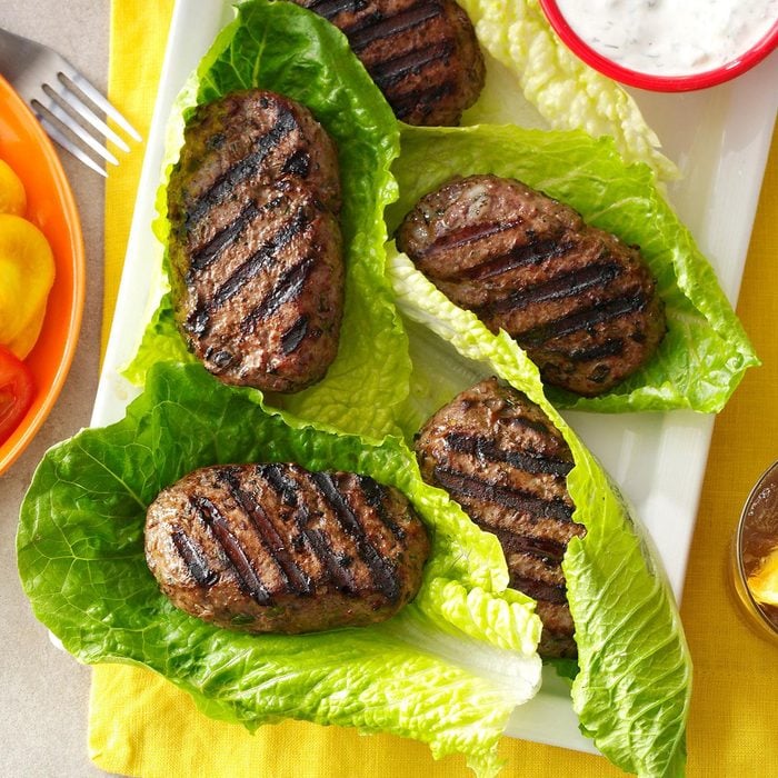 I love the way these fresh flavors blend. It’s a snap to throw these wraps together for a quick, healthy lunch. The burgers can also be served on buns if you like. —Rachelle McCalla, Atlantic, Iowa