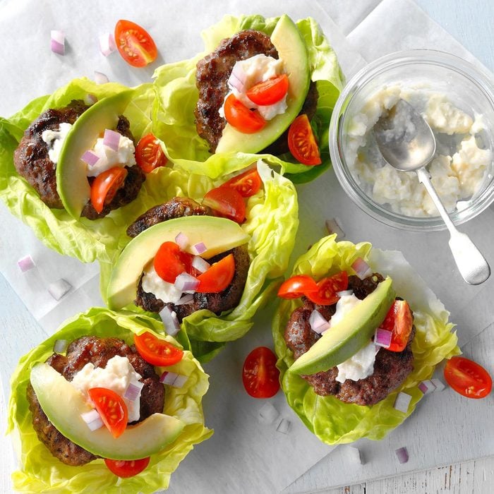 One of my family’s favorite low-carb lunches is lettuce-wrap burgers, which brings all the cheeseburger goodness without needing a bun. We wrap juicy, seasoned ground beef in crisp lettuce leaves and pile on the classics: melty cheddar, pickles, cherry tomatoes and a drizzle of burger sauce. It’s a fresh, fork-friendly way to enjoy nostalgic summer flavors. Quick to prep, easy to pack and endlessly customizable—it’s a feel-good lunch my family keeps returning to!