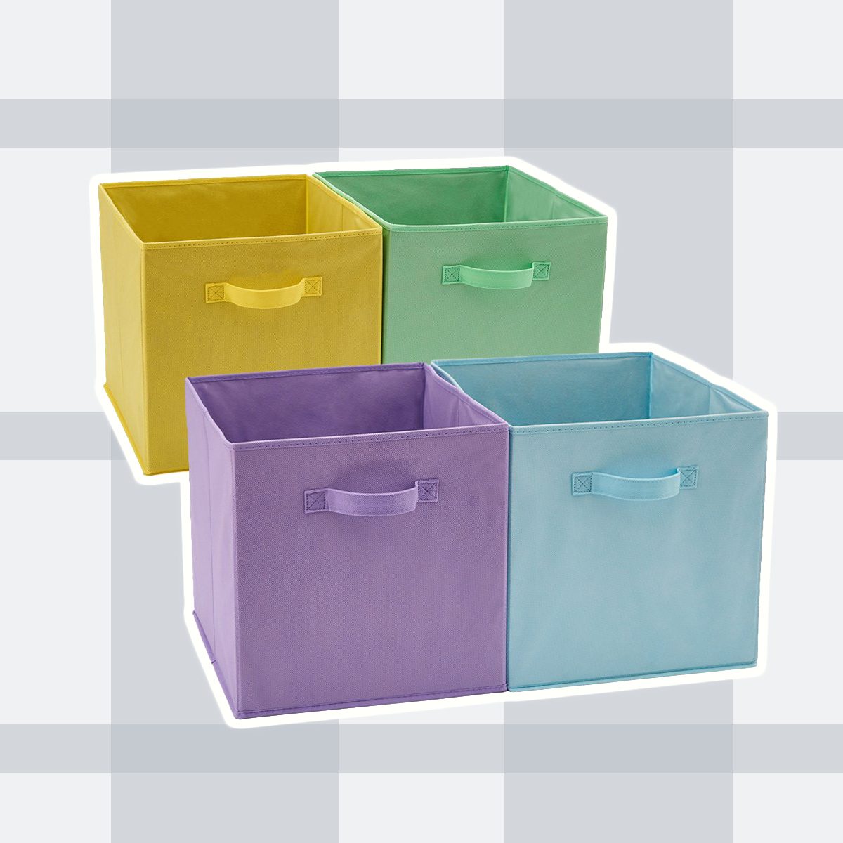 Marie Kondo knows just how much kids’ toys can mess up an otherwise tidy room, so she suggests dividing toys into categories, like building blocks and plush. Try placing like items in different storage cubes. They’re an attractive solution for keeping things tidy and kids can be reminded to put their plush toys in the yellow cube and their blocks in the blue cube!