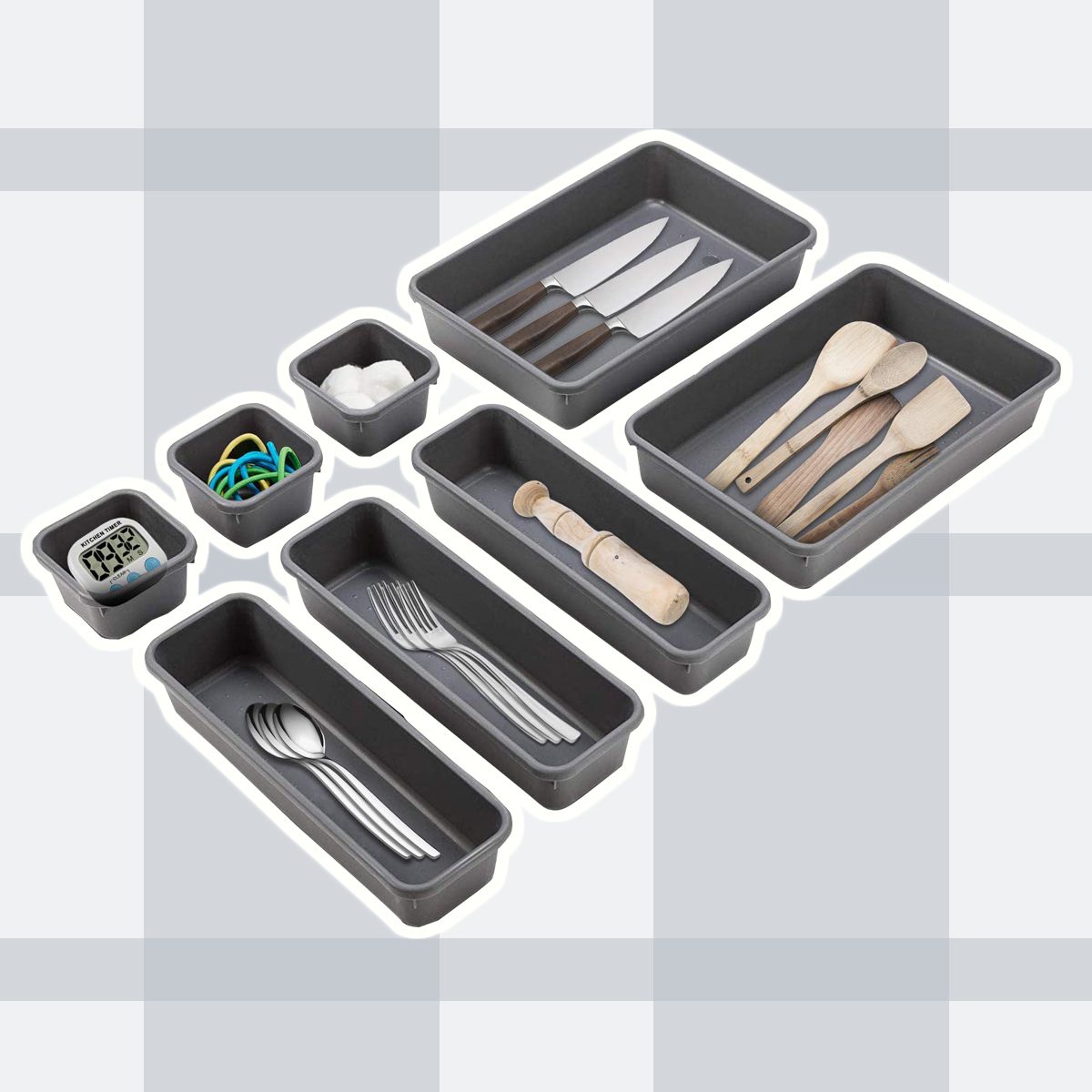 Cutlery, wine openers, chip clips and other kitchen essentials that are small enough to fit together in one drawer can easily get jumbled up and create one big mess! Keep things tidy by implementing mix-and-match drawer organizers and dividers for customized modular storage.