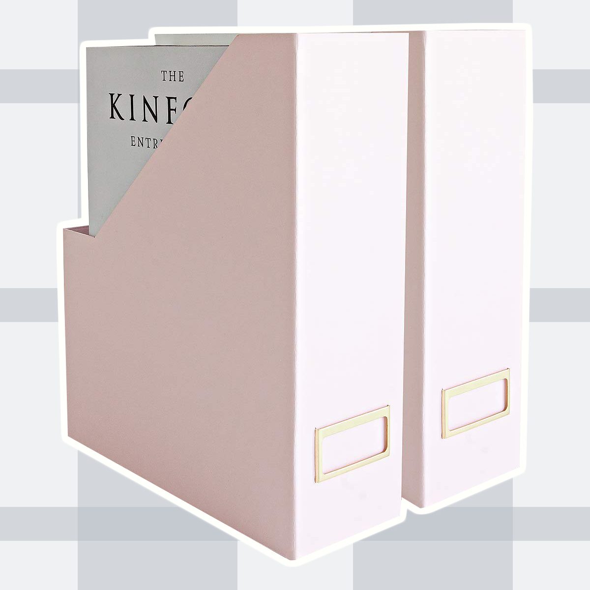 Keep paper files you need to access regularly in discreet magazine organizer boxes. It’ll keep you from losing important paperwork, while ensuring your desk remains free of pending, important and miscellaneous papers.