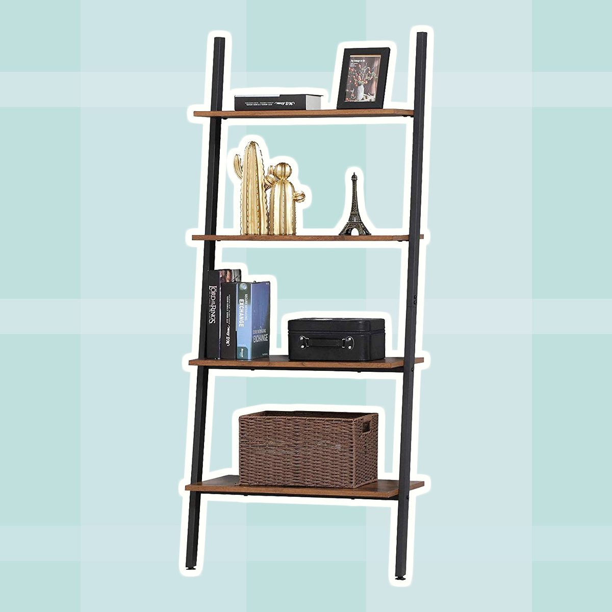 Being organized doesn’t mean you have to own a mountain of clear, plastic storage containers. There are plenty of opportunities to implement your personal style, like using a leaning bookshelf where you keep books that inspire you on one shelf and other items that spark joy on another.