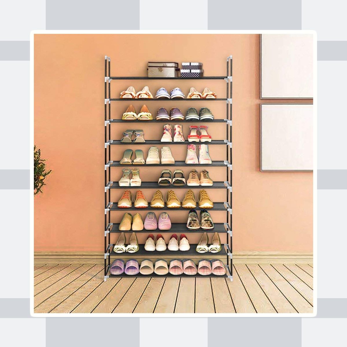 For people with a major shoe collection, Marie Kondo suggests putting the pairs that spark joy on display, perhaps on a rack like this. Think about color, shape, brand, year, etc., when choosing your favorites.