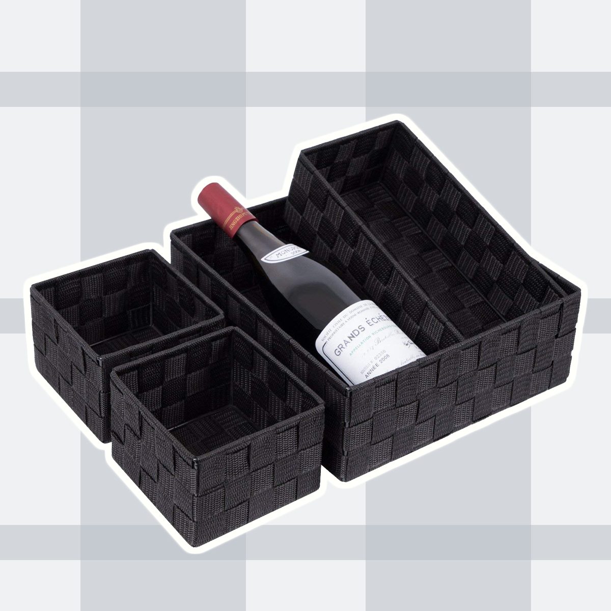 A set of woven baskets is great for grouping together similar things. And for items that seem to get messed up a lot, or strewn everywhere, these baskets give those items a permanent home. Woven baskets are also design-friendly, so they won’t look out of place if you want to store items in plain sight in your living room or entryway.