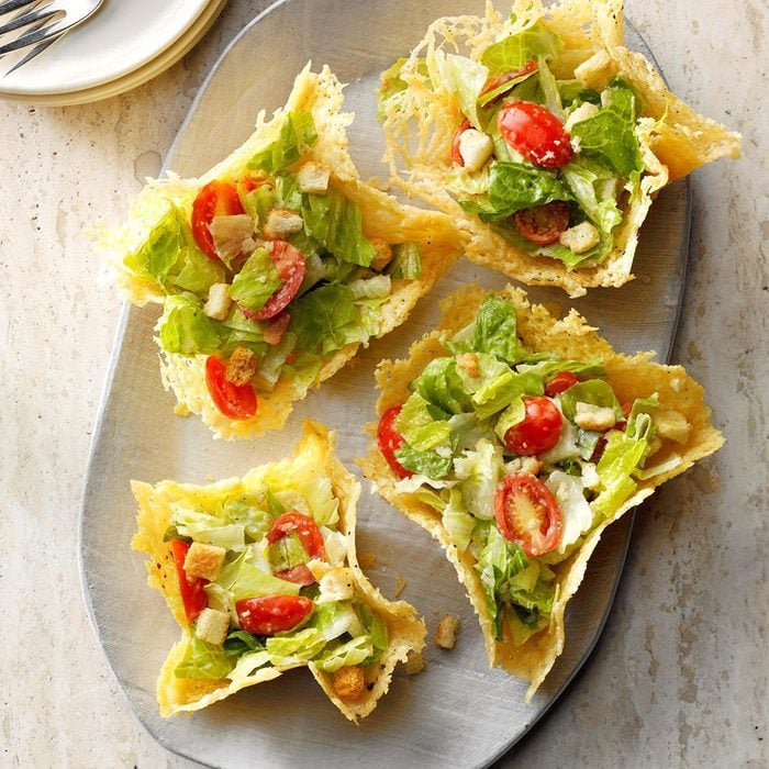 Caesar Salad in Peppered Parmesan Bowls