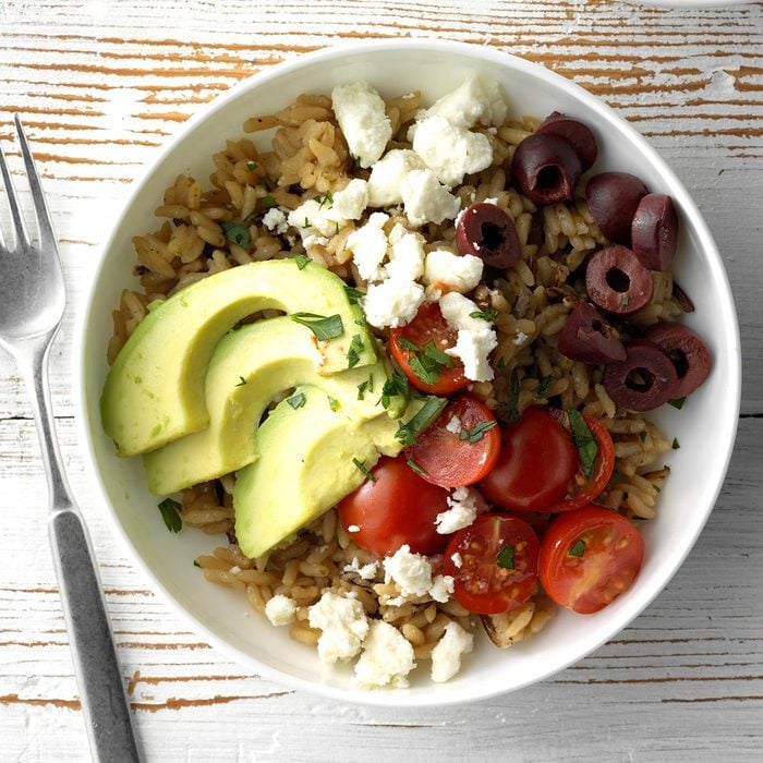 This fresh rice dish tastes like the Mediterranean in a bowl! It is short on ingredients but packs in so much flavor. For a hand-held version, leave out the rice and tuck the rest of the ingredients into a pita pocket. —Darla Andrews, Boerne, Texas