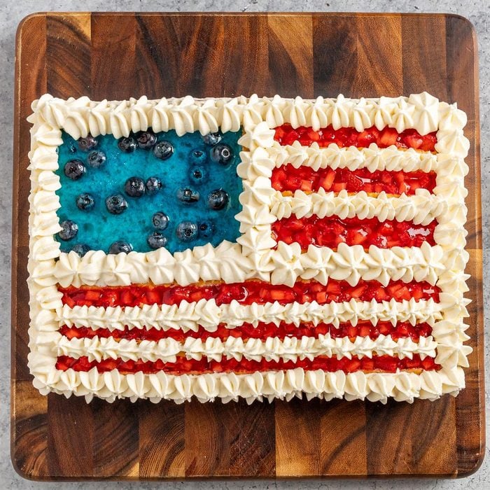 For a berry fun twist on a Memorial Day cake, poke holes into a baked cake and pour warm liquid gelatin over it. When you refrigerate it, you’ll get a fruity marbled effect.