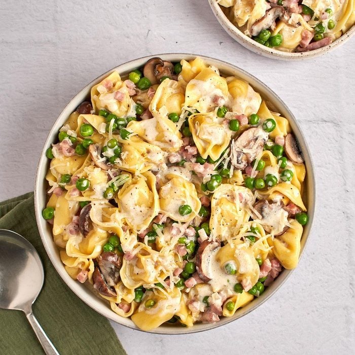 This recipe combines convenient supermarket shortcuts—frozen peas and refrigerated tortellini—with homemade Alfredo sauce. It’s an easy but impressive dinner. If you are feeling ambitious or have extra time, try your hand at homemade pasta instead of using tortellini. Making homemade pasta was an activity my mother and I loved to do together.
