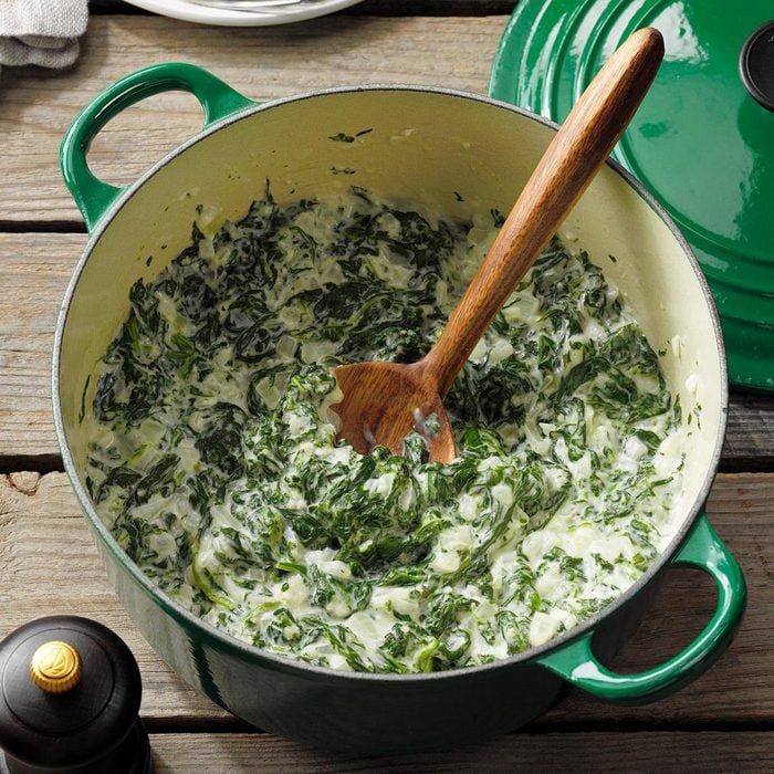 My mother made a variety of spinach dishes when I was growing up. This rich, delicious creamed version is the only one that stayed with me through the years. —Edie DeSpain, Logan, Utah