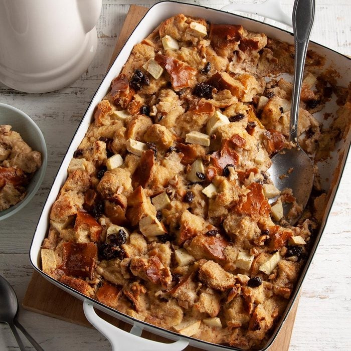 I created this challah bread pudding recipe after my mother-in-law told me that she liked bread pudding. I was on a mission to create a version that was so good she’d ask me for the recipe. It worked! This can be served for breakfast, brunch or dessert. —Marsha Ketaner, Henderson, Nevada