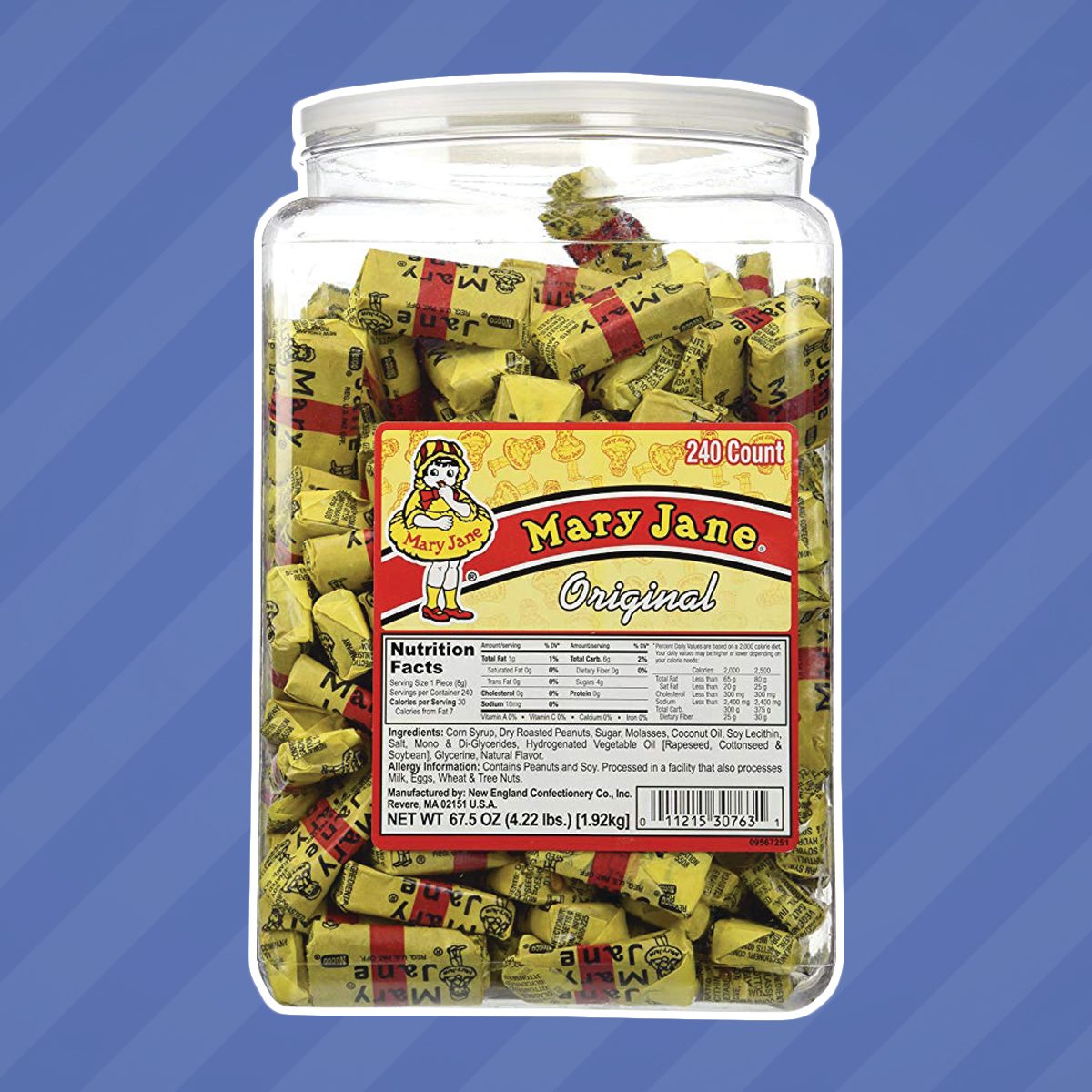 A simple yet luscious combination of peanut butter and molasses, Mary Janes have been beloved across generations for over 100 years. Charles Miller invented the chewy treat in 1914, naming his sweet creation after his Aunt Mary Jane. Since the candy’s early days, its distinct yellow wrapper has featured the same illustration of a young girl wearing “Mary Jane”-style shoes.
