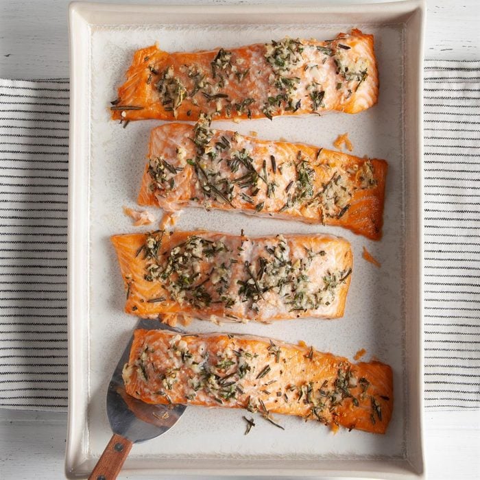 My roasted salmon is so simple but elegant enough to serve to company. I make it on days when I have less than an hour to cook. The salmon seasoning is an easy way to add flavor. —Luanne Asta, Hampton Bays, New York