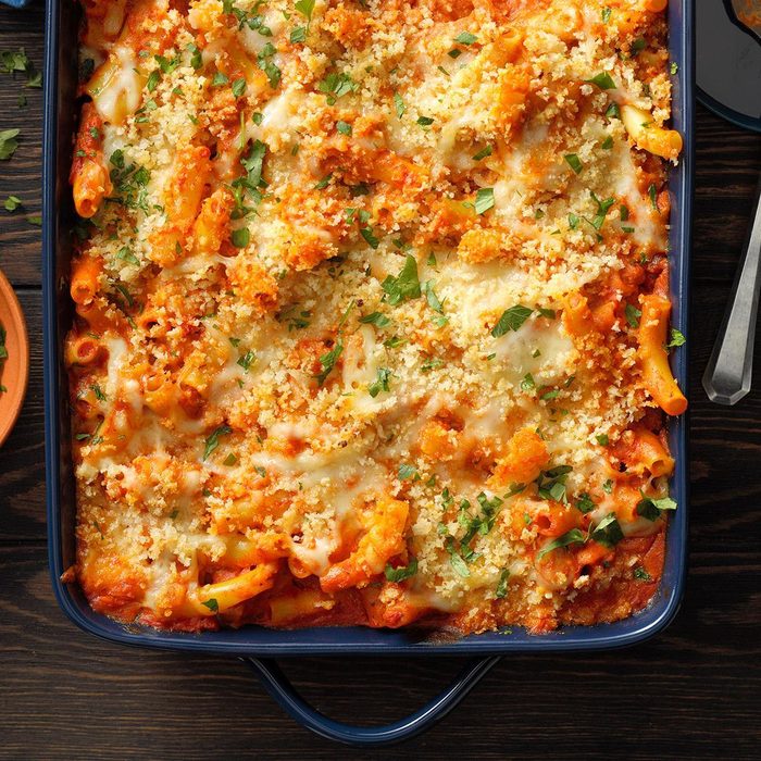 After having the five-cheese ziti at Olive Garden, I tried to make my own version of it—and I think I got pretty close. I always double this when I’m making it and freeze the second one for another meal. —Keri Whitney, Castro Valley, California