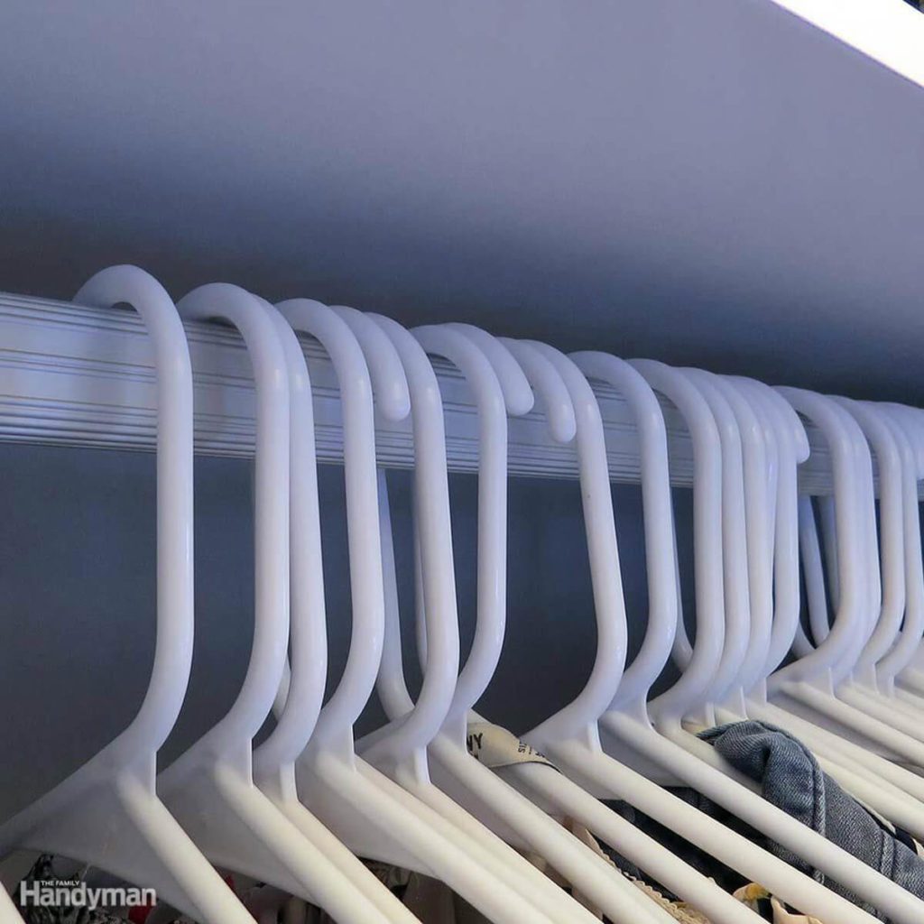 Salvage the hidden space at the recessed ends of your closets by adding a set of wire shelves. Wire shelves are available in a variety of widths. Measure the width and depth of the space. Then choose the correct shelving and ask the salesperson to cut the shelves to length for you. Subtract 3/8 in. from the actual width to determine the shelf length. Buy a pair of end mounting brackets and a pair of plastic clips for each shelf. Want more tips on organizing your closet? Check out these 11 clothes storage ideas.